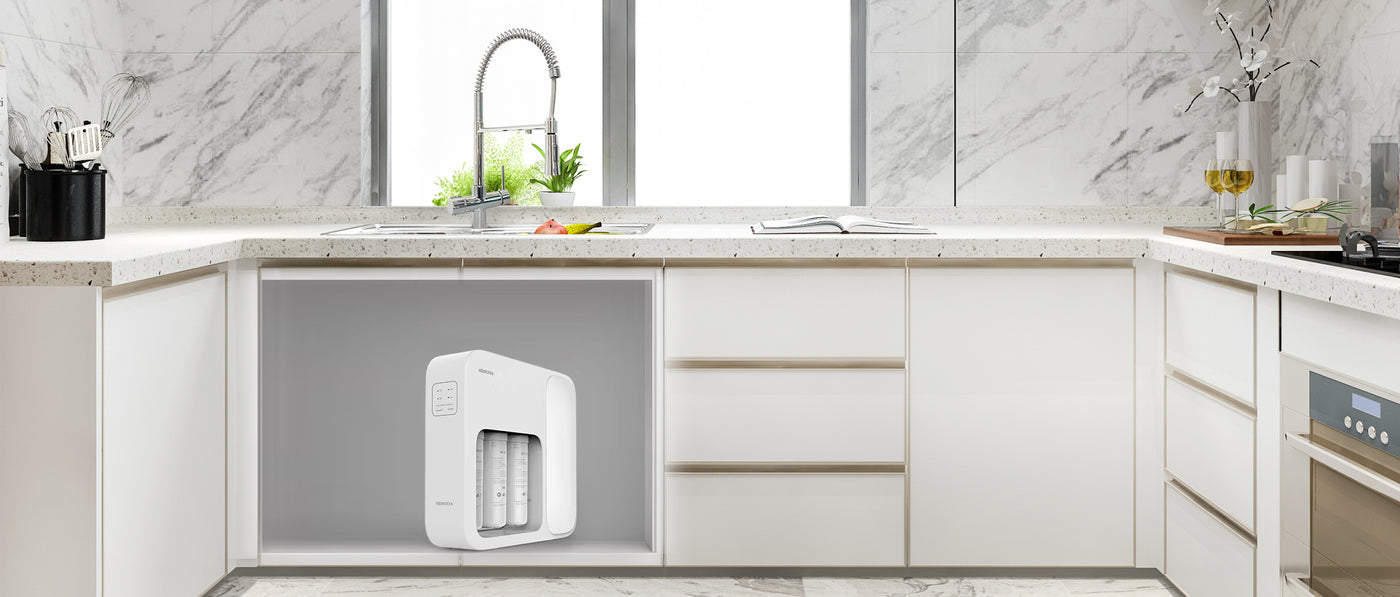 Su diseño minimalista y compacto, con solo 17,7 cm de ancho, incluye un panel de control intuitivo y un tanque de agua incorporado, optimizando el espacio sin afectar la estética de la cocina. Compatible con grifería de tres vías o su propio grifo, ofrece comodidad y versatilidad para el día a día. Además, su recordatorio de cambio de filtro asegura un mantenimiento eficiente para una purificación siempre óptima.