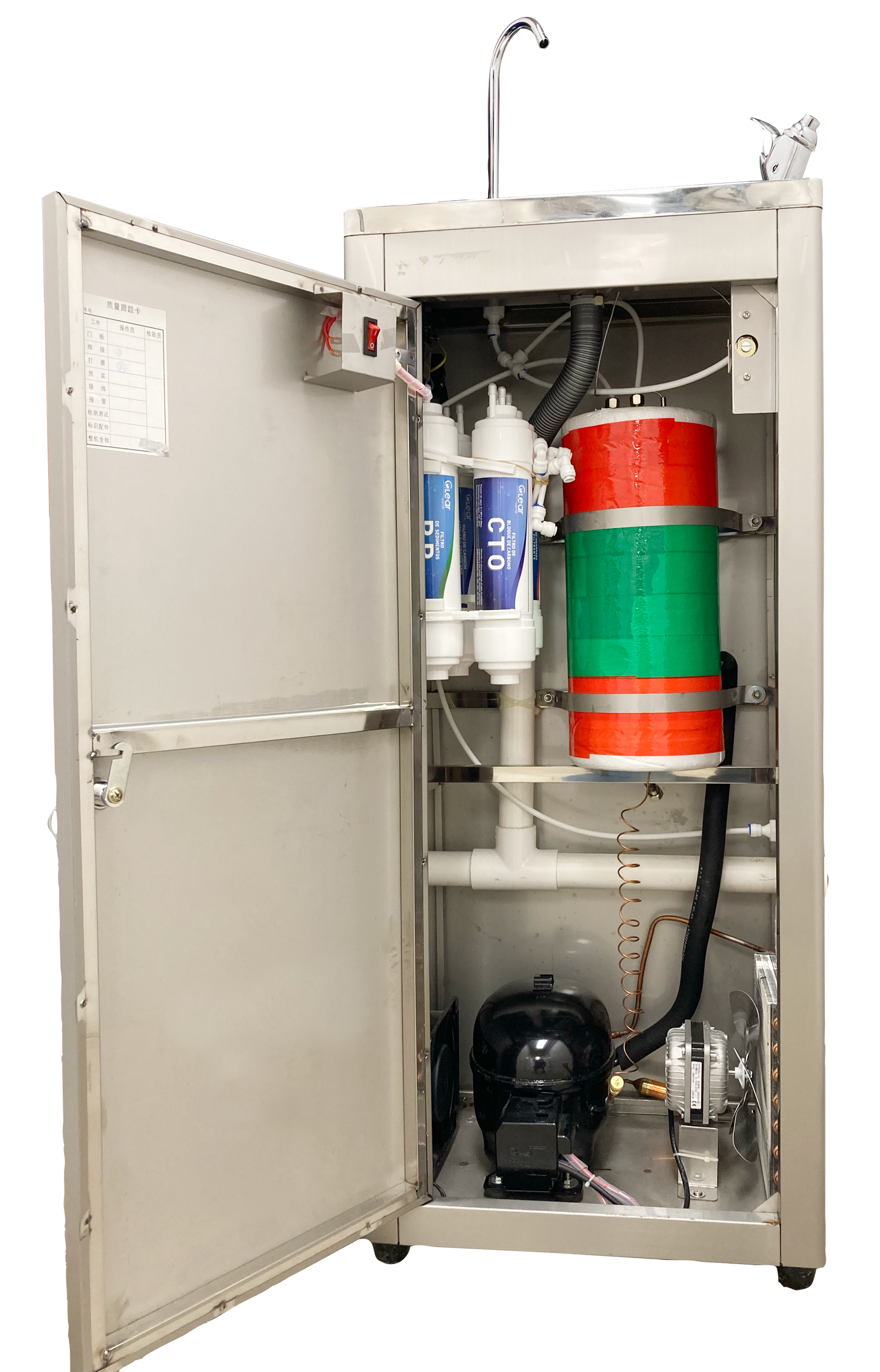 Capacidad del tanque de agua: 5 litros// Tanque de agua fría: 20 litros/hora a 8-12°C// Contiene 4 filtros:/ CTO - Carbón activado de coco en bloque, impregnado en plat/ GAC - Carbón granulado de coco, impregnado en plata/ PP – Polipropileno/ UF - Ultra filtrante