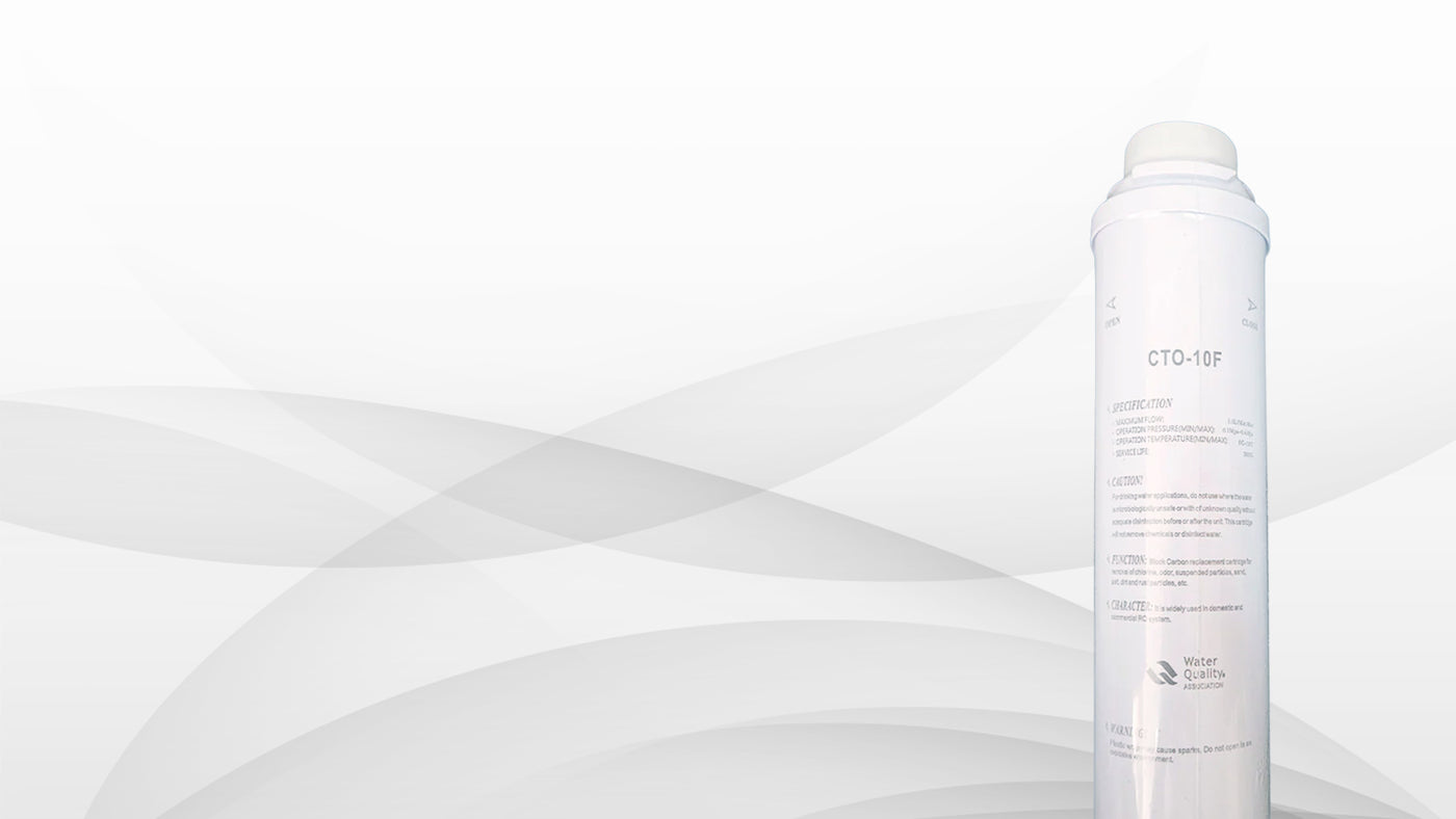 El filtro CTO-10CF está elaborado con carbón activado de coco en bloque condensado, impregnado en plata, lo que le otorga una alta capacidad de adsorción y protección antibacteriana.